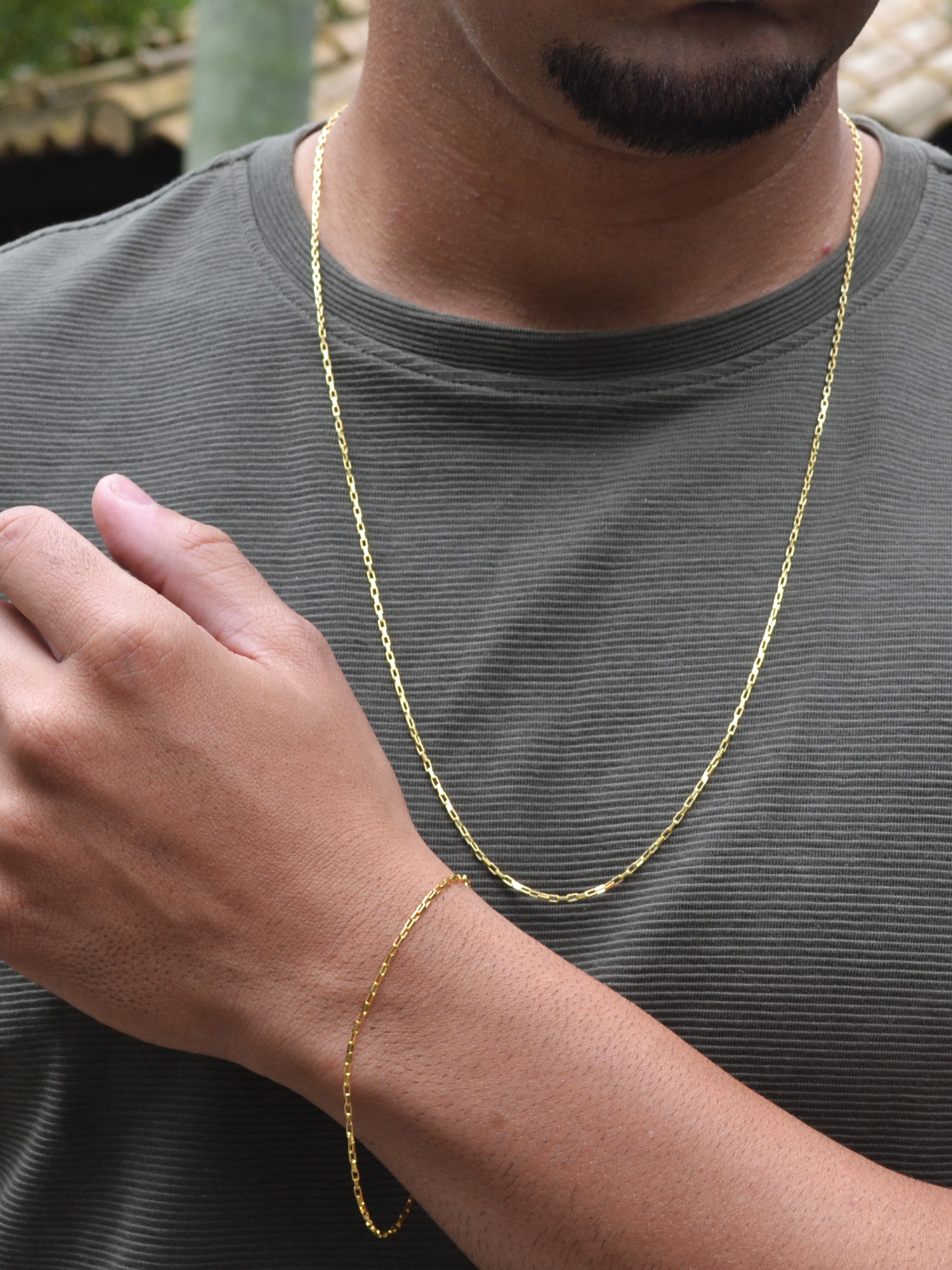 Nossas peças são feitas com uma liga metálica de cobre e zinco, ideal para garantir um acabamento perfeito e fixação do banho de ouro de 10 milésimos. O acabamento final é com verniz antialérgico, tornando a joia hipoalergênica.