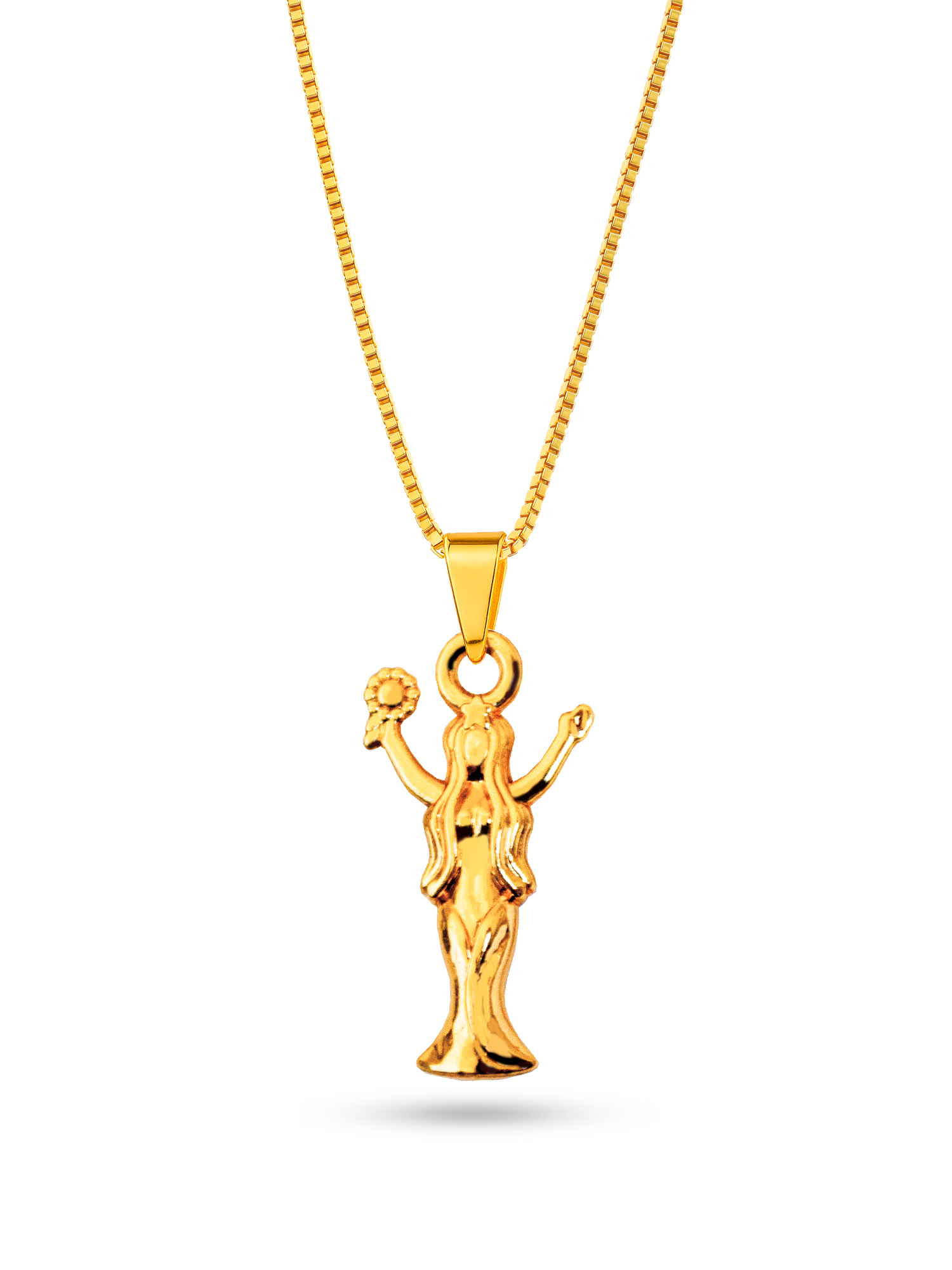 Medidas do pingente: Pingente Iemanjá, medindo 2,0 x 1,0 cm.