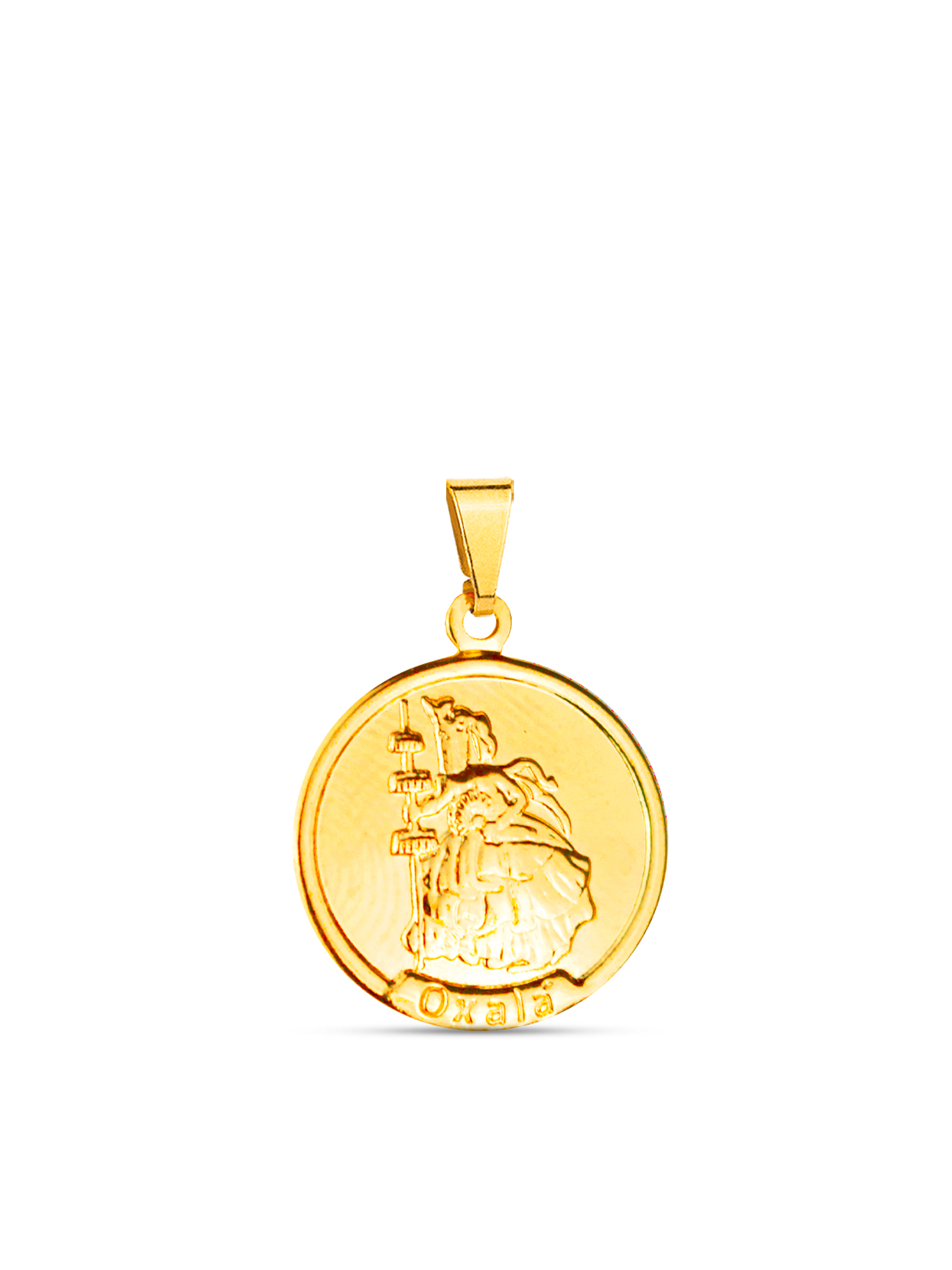 Medidas do pingente: Medalha com imagem de Oxalá, medindo 1,8 x 1,8 cm.