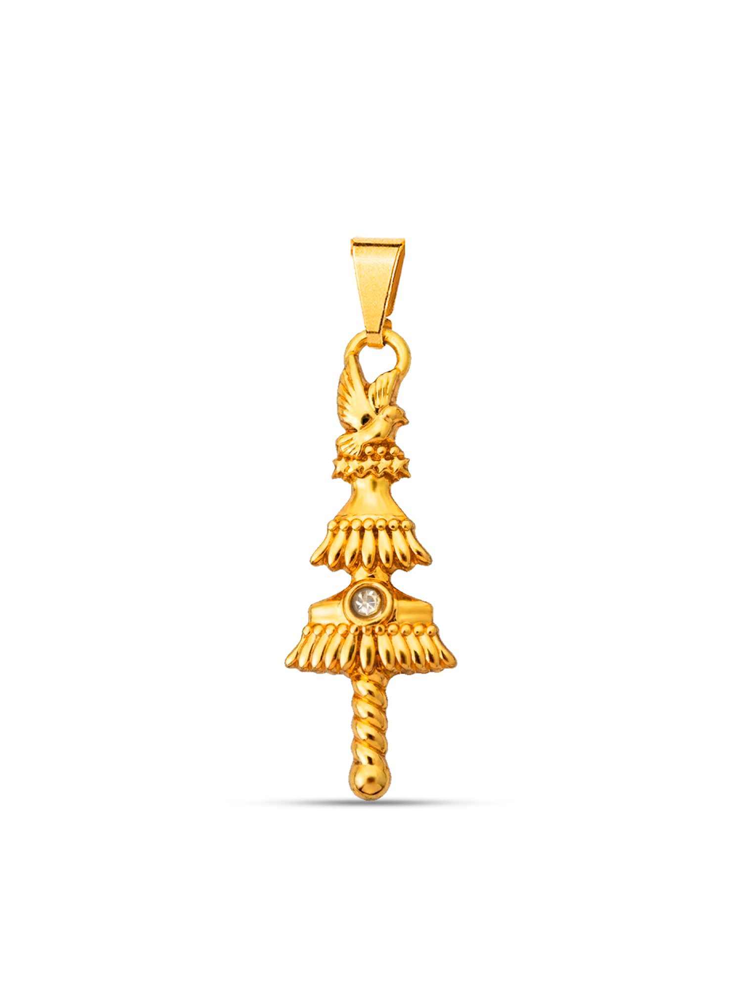 Medidas do pingente: Opaxorô de Oxalá, medindo 3,4 cm de altura e 1,4 cm de largura.