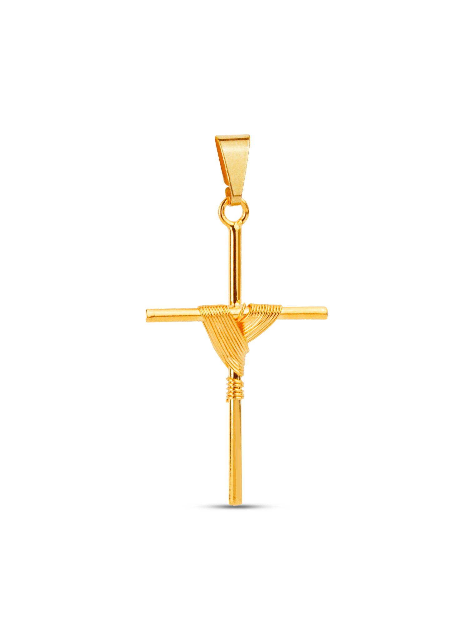 Medidas do pingente: Cruz palito amarrada tamanho M, medindo 2,5 x 1,6 cm.